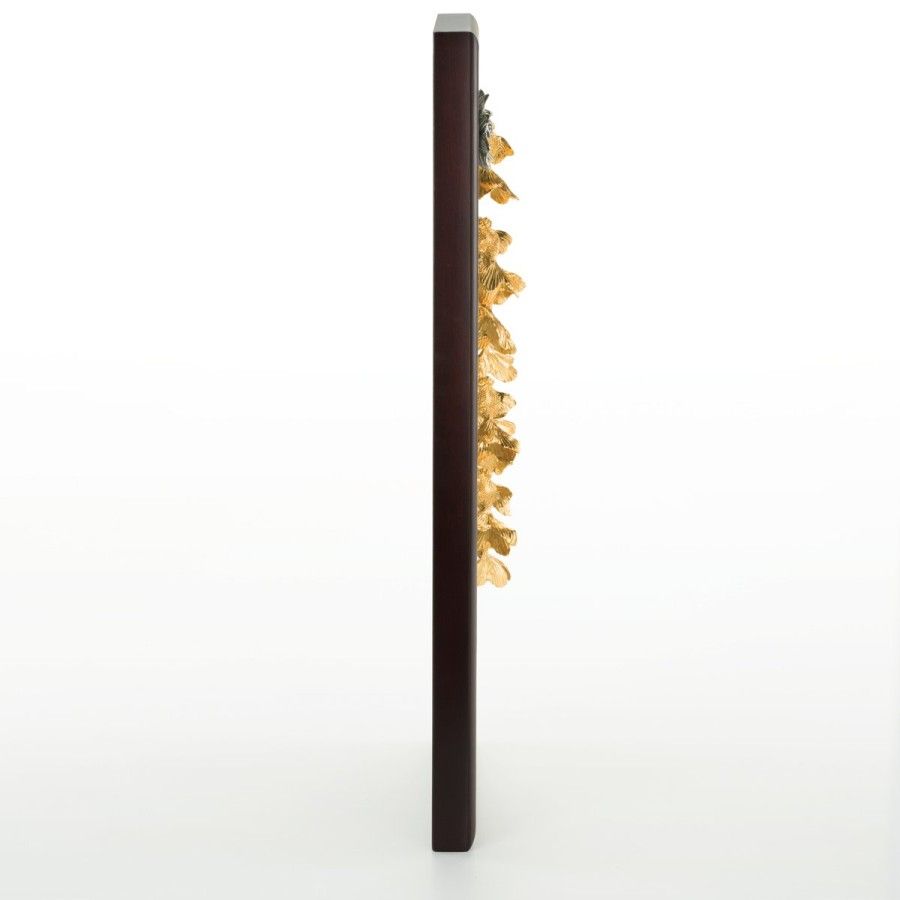 Bức tranh chín chú cá vàng được mạ vàng 24K đang bơi trong hồ nước hướng tới bông hoa sen. Sản phẩm theo chủđề cửu ngư, cá vàng tượng trưng cho sự thịnh vượng, sung túc vĩnh cửu và hoa sen tượng trưng cho sự thuần khiết, thanh cao. Kích thước: 23cm x 46cm