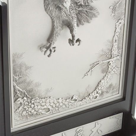 Tiêu đề của bức tranh là “Cưỡi trên đỉnh thành công”. Nó có nghĩa là người ta phải có tầm nhìn xa để thành công trong sự nghiệp của mình. Bức tranh như một lời chúc dành cho chủ nhân có thểđạt được những ước vọng, cất cánh và vút bay như một con đại bàng trên bầu trời. Kích thước 38cm x 22cm